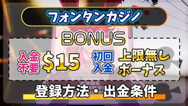 【15ドル】フォンタンカジノの入金不要ボーナスの貰い方・登録方法・出金条件まとめ