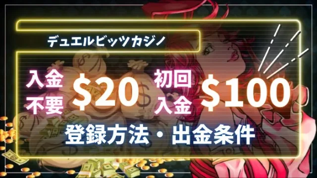 2025.10.18【限定20ドル・賭け条件1倍】デュエルビッツの入金不要ボーナス・登録方法・出金条件を解説!