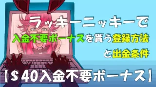 【限定】新規登録ボーナス | 40ドル新規登録ボーナス ⇒ラッキーニッキーの【限定】入金不要ボーナスの受け取り方を見る ボーナスコード不要 |