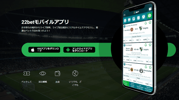 22betはiPhone、Android双方のユーザーが利用できるモバイルアプリをリリースしている点も好評です。