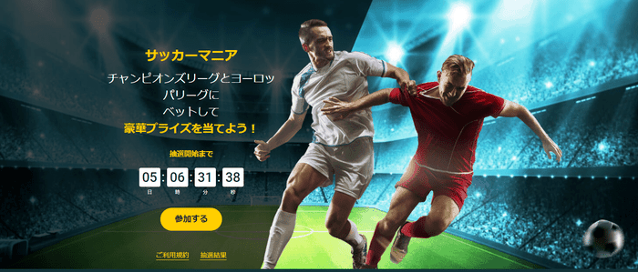 本記事を執筆している2021年4月下旬には、ヨーロッパチャンピオンズリーグへの賭けを通じてBMWやMac Book、iPhoneなど超豪華賞品が当選するイベントが開催されていました。