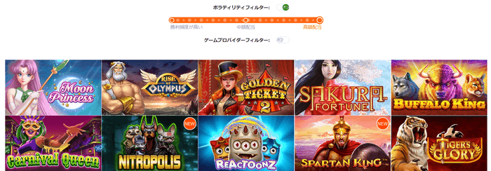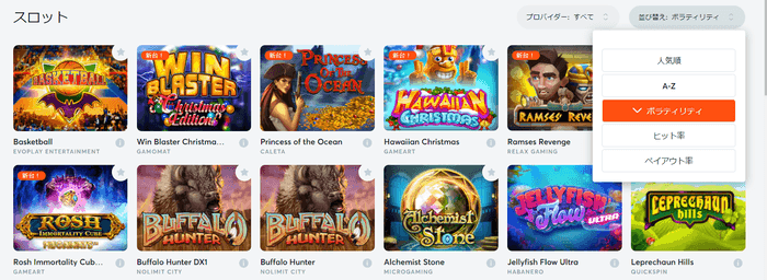 またビットカジノでもボラティリティ順にスロットを並び替えることが可能です。