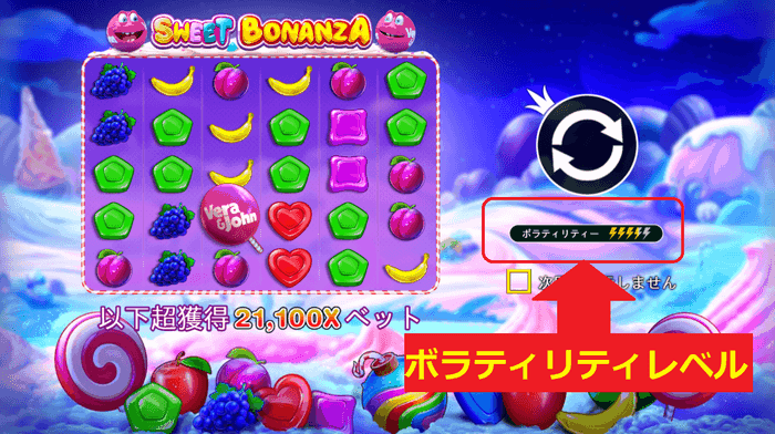 なおPragmatic Playのスロットの場合には、ゲームのオープニング画面に雷のアイコンでボラティリティレベルが表示されます。