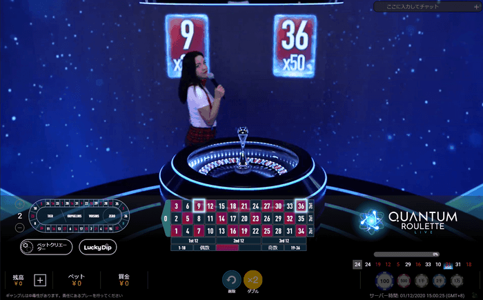 ベットの度にルーレットの内部でマルチプライヤーも回転しており、止まった数字に応じてストレートアップの配当を受け取ることができます。