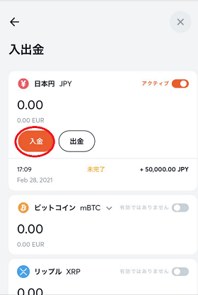 次に「入金」という文字をタップします。