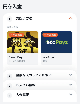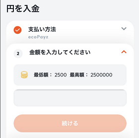 すると以下の通り入金画面に遷移します。