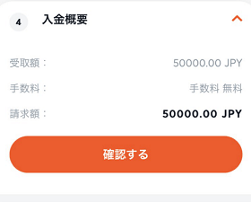 入金概要が表示されるので、問題がなければ「確認する」をタップしてください。