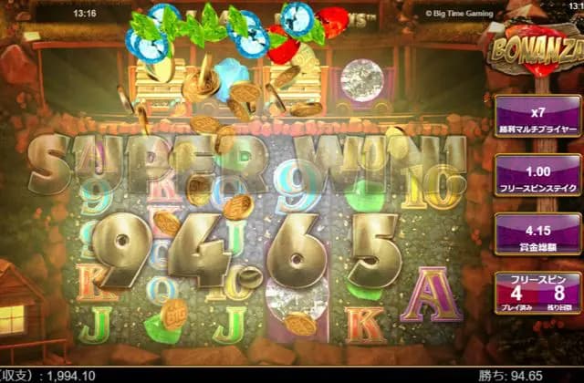 このように、Bonanza Megawaysは最大117,649本という膨大なペイライン数を備えた爆発力の高いビデオスロットなので、ぜひ一度挑戦してみてください。