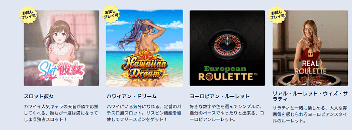 無料バージョンということで、一切資金を保有していないプレイヤーでも、様々なゲームをプレイすることができます。