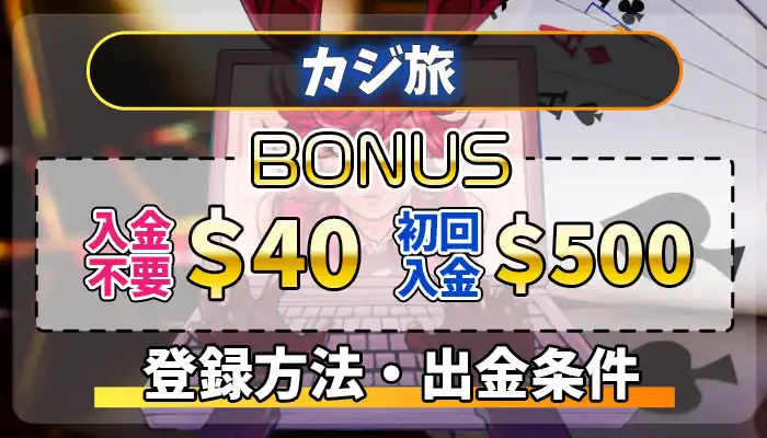 【限定40ドル】カジ旅の入金不要ボーナス・登録方法・出金条件を徹底解説