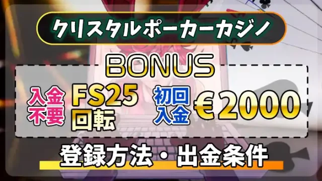 クリスタルポーカーカジノ 【FS25回】クリスタルポーカーカジノの入金不要ボーナスの貰い方・登録方法・出金条件まとめ 2024年9月10日 admin オンカジギャンブラーの酒場|オンラインカジノ最強攻略サイト