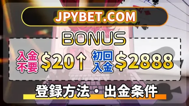 JPYBET 【最大20ドル】JPYBETの入金不要ボーナスの貰い方・登録方法・出金条件・初回入金ボーナス情報 2023年9月15日 setup001 オンカジギャンブラーの酒場|オンラインカジノ最強攻略サイト