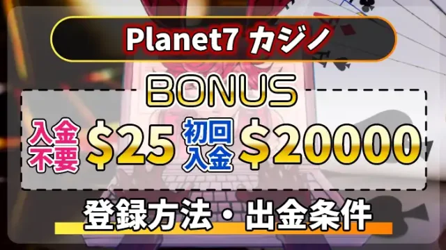 プラネット7カジノ 【25ドル】Planet7カジノの入金不要ボーナスの貰い方・出金条件・登録方法を解説! 2024年4月3日 setup001 オンカジギャンブラーの酒場|オンラインカジノ最強攻略サイト