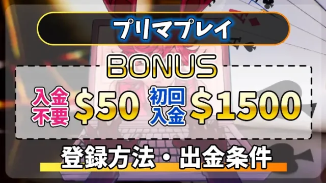 プリマプレイ 【50ドル】プリマプレイ(PrimaPlay)の入金不要ボーナスの貰い方・出金条件・登録方法を解説 2024年3月21日 admin オンカジギャンブラーの酒場|オンラインカジノ最強攻略サイト