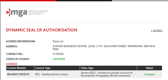 取得しているライセンスはマルタ共和国発行のライセンスです。