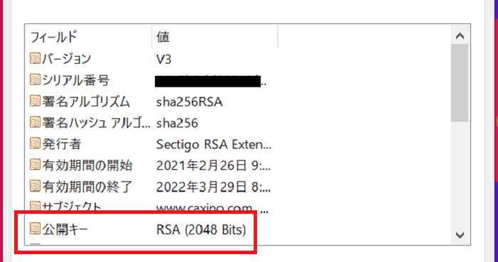 実際にサイトに搭載されている暗号化システムをチェックしてみたところ、RSA2048Bitsを採用していることが分かりました。