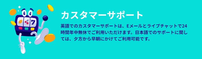 Caxinoには日本語サポートがあり、毎日15時15分から翌日8時まで利用できます。