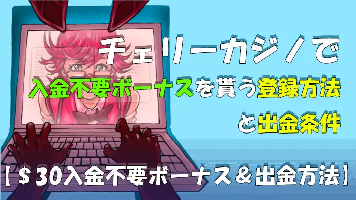 チェリーカジノに【30ドル】入金不要ボーナス付きで登録する方法(ボーナスコード不要)、最大出金額100ドルの達成方法、出金条件について解説します。