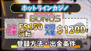 オンラインカジノ業界における賭け条件の平均は25倍程度なので、賭け条件40倍はかなり厳しめの設定です。オンカジ初心者は以下のように賭け条件が5倍以下の入金不要ボーナスがおすすめです。