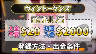 ボーナス内容 | 【20ドル】入金不要ボーナス |