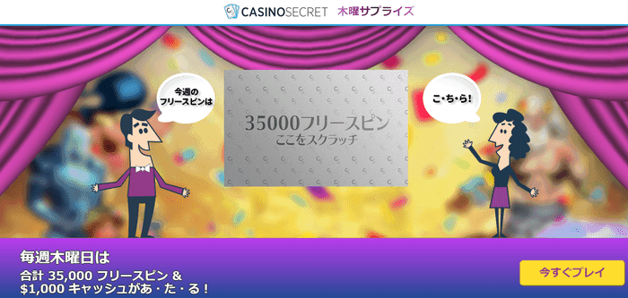 当サイト限定ボーナス | 500ドル&33ドルキャッシュバック ⇒カジノシークレットの限定キャッシュバックの受け取り方を見る |