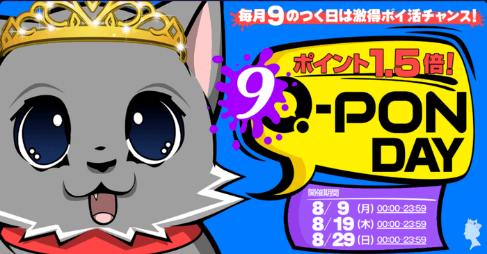 9のつく日に入金をすると、通常よりも50%上乗せでQ-Ponを受け取ることができます。