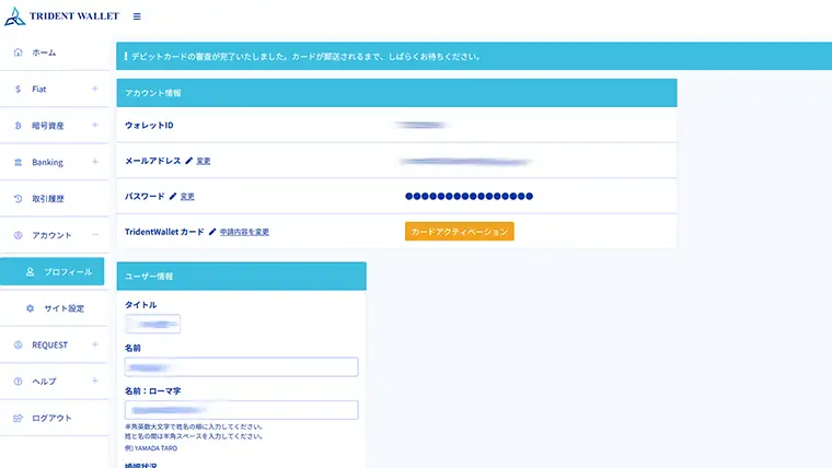 トライデントウォレットカードが届いたら、アクティベーションを行います。