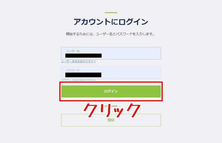 「ログイン」をクリックするとログインページに移動するので、アカウントを開設するときに設定したユーザー名とパスワードを入力して「ログイン」ボタンをクリックしてください。