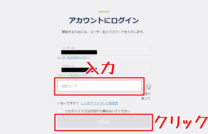 認証コードの入力を省きたいという方は「このデバイスでは次回から尋ねないでください」というチェックボックスにチェックを入れてください。