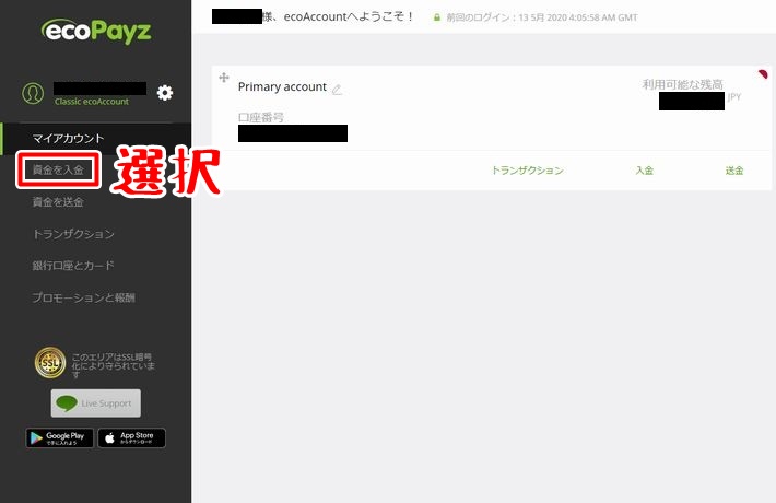 エコペイズで利用可能な入金方法の概要を理解したら、次はいよいよ入金手順です。
