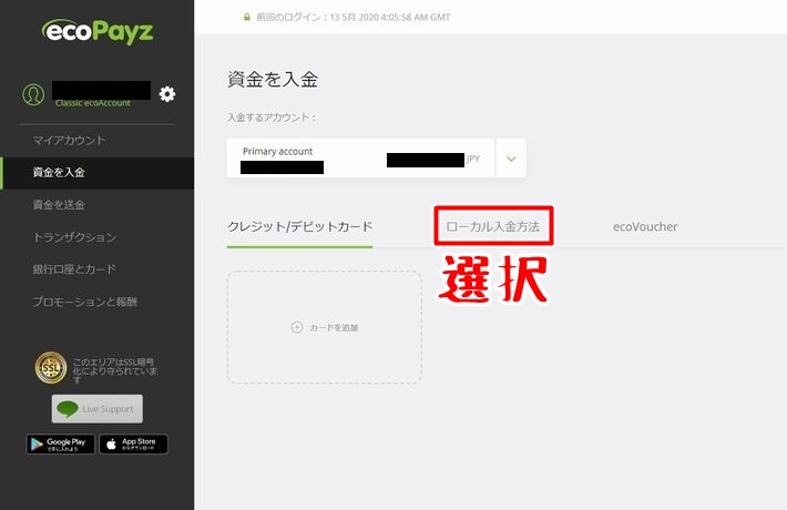 クレジットカードで入金したいという方はecoVoucherで入金してください。