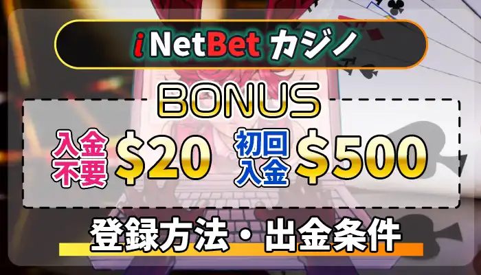 この記事ではiNetBetカジノの登録方法や入金不要ボーナスの出金条件、初回入金ボーナス情報をまとめて解説しています。iNetBetカジノの入金不要ボーナスを受け取りたい人は参考にしてください。