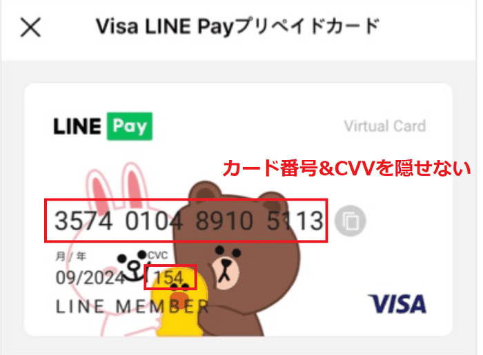 しかしVISA LINE PAYプリペイドカードはバーチャルカードであるため、スマートフォンでスクリーンショットを撮影して提出する必要があります。