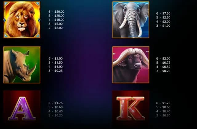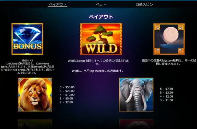 | ゾウ | – | x1.00 | x2.00 | x2.50 | x7.50 |