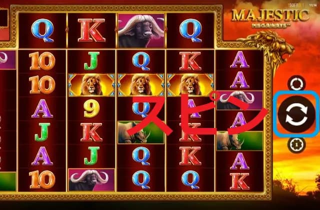 ベット額など各種設定が済んだらスピンボタンをクリックしてゲームを開始しましょう。