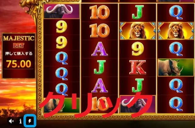 高速スピンは画面左下にある稲妻アイコンをクリックすることでオンオフできます。