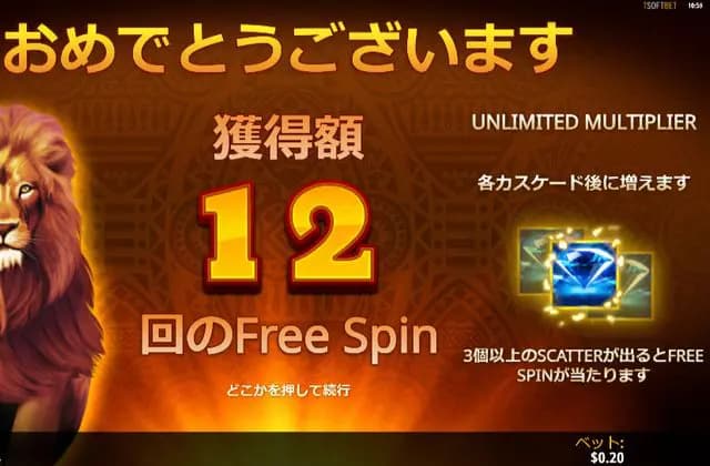 ミニマムベットならたった$15の投資でフリースピンボーナスに進むことができるので、ぜひ試してみてください。