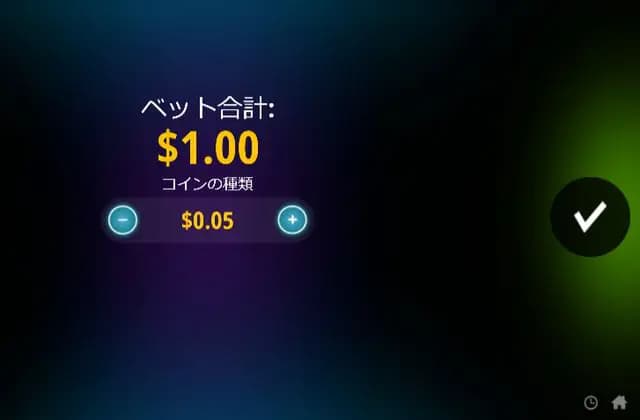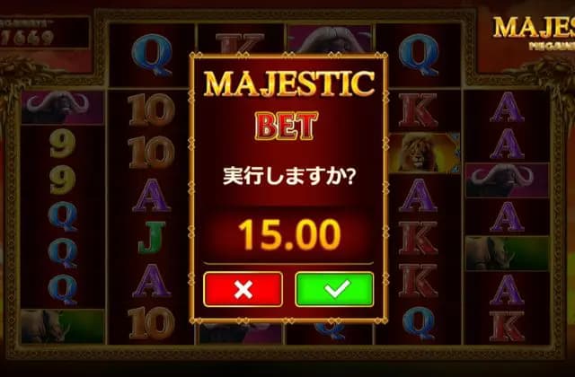 「Majestic Bet」のアイコンをクリックすると実行するかどうか確認されるので、購入金額を確認して緑色の「チェック」ボタンをクリックしてください。