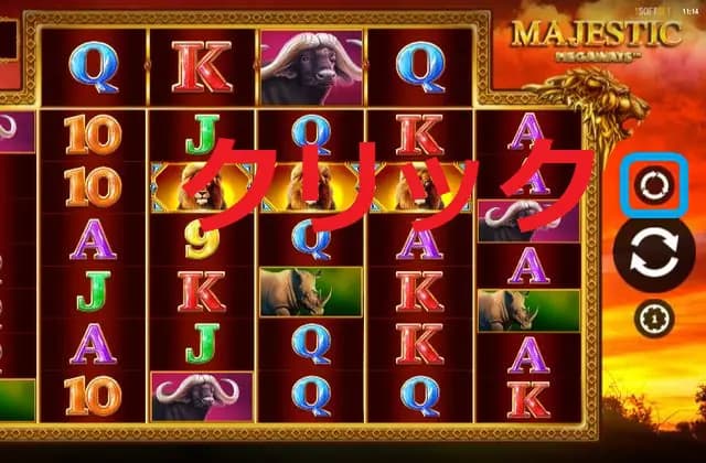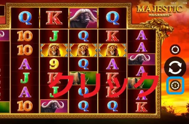Majestic Megawaysのゲーム画面を開いたら、左端にある「Majestic Bet」のアイコンをクリックします。