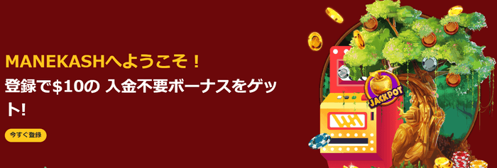 通常、他のオンラインカジノではボーナスを使ってジャックポット機種をプレイすることは禁じられていますが、manekashの場合はOKです。