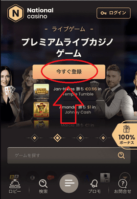 まずはナショナルカジノの公式サイトにアクセスしましょう。