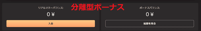 ※分離型ですが、入金ボーナスを使用してプレイする場合、キャッシュ分にもベット上限が適用されるので注意