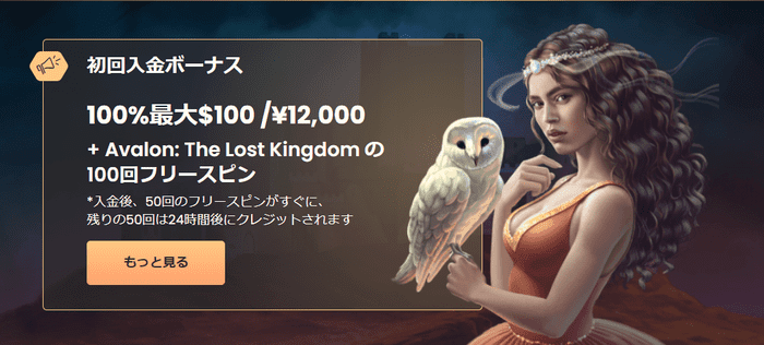 初回 | 最大12000円の100%ボーナス&フリースピン100回 | Avalon:The Lost Kingdom |