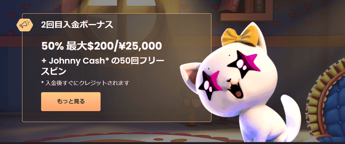 2回目 | 最大2万5000円の50%ボーナス&フリースピン50回 | Jonny Cash |