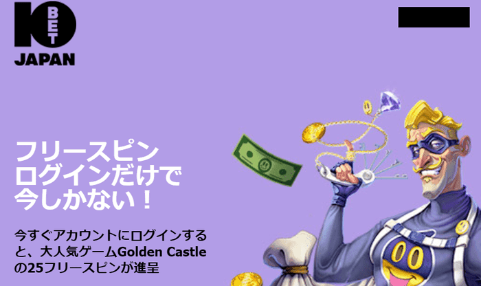 10betでは突然ログインボーナスとして入金不要のボーナスやフリースピンを受け取ることができます。