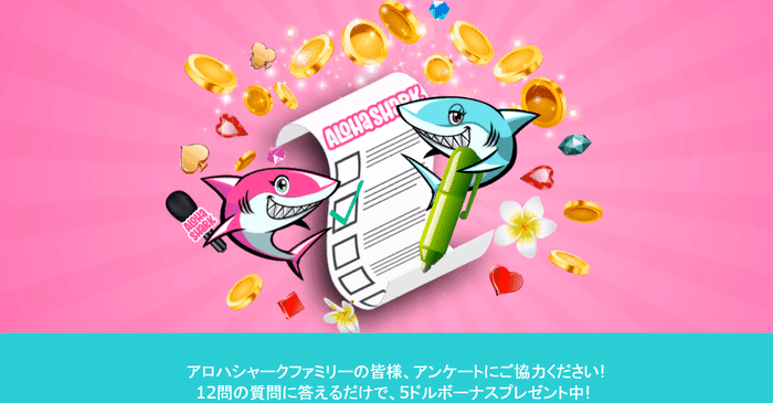 アロハシャークでも度々入金不要ボーナスやフリースピンが貰えます。