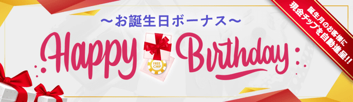ジパングカジノでは毎年1回、誕生月に誕生日ボーナスとして出金条件なしの現金チップが貰えます。