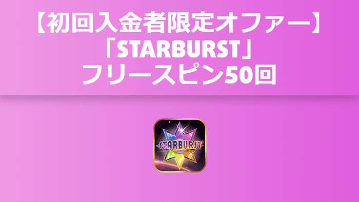 ロトランドでは初回入金時に2000円以上を入金すると、NetEntの『Starburst』で使える出金条件なしのフリースピン50回を受け取ることができます。