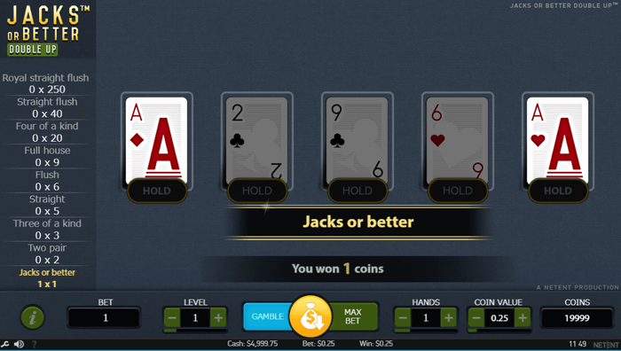 Jacks Or Betterは、ポーカーのトレーニングに最適なゲームです。