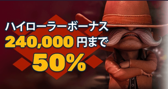 そんな方にはハイローラー専用に用意された最大24万円の50%ボーナスがおすすめです。